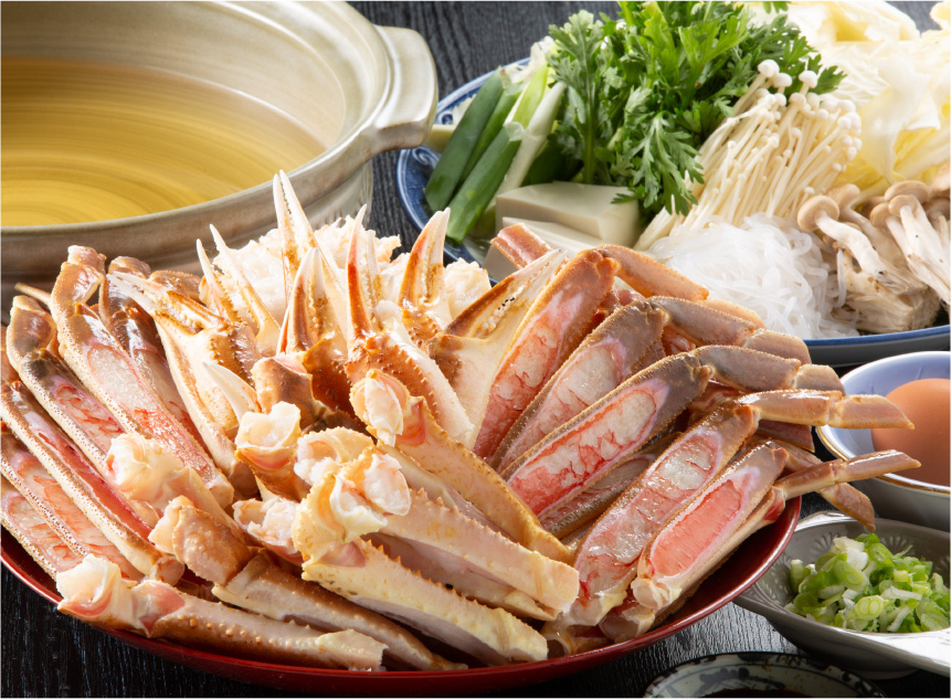 個室お座敷にて、1日先着2組限定で承ります。 カニ料理は宿泊者向けの料理内容と同じです。(八寸、デザートなど、カニ料理以外が一部異なります)