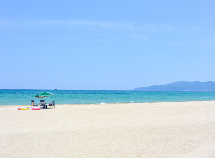 遠浅で波が穏やかな海水浴場は、小さなお子様も安心して遊べます。砂浜でのんびりしたり、貝殻を拾ったり、家族みんなで夏の思い出づくりにぴったりです。